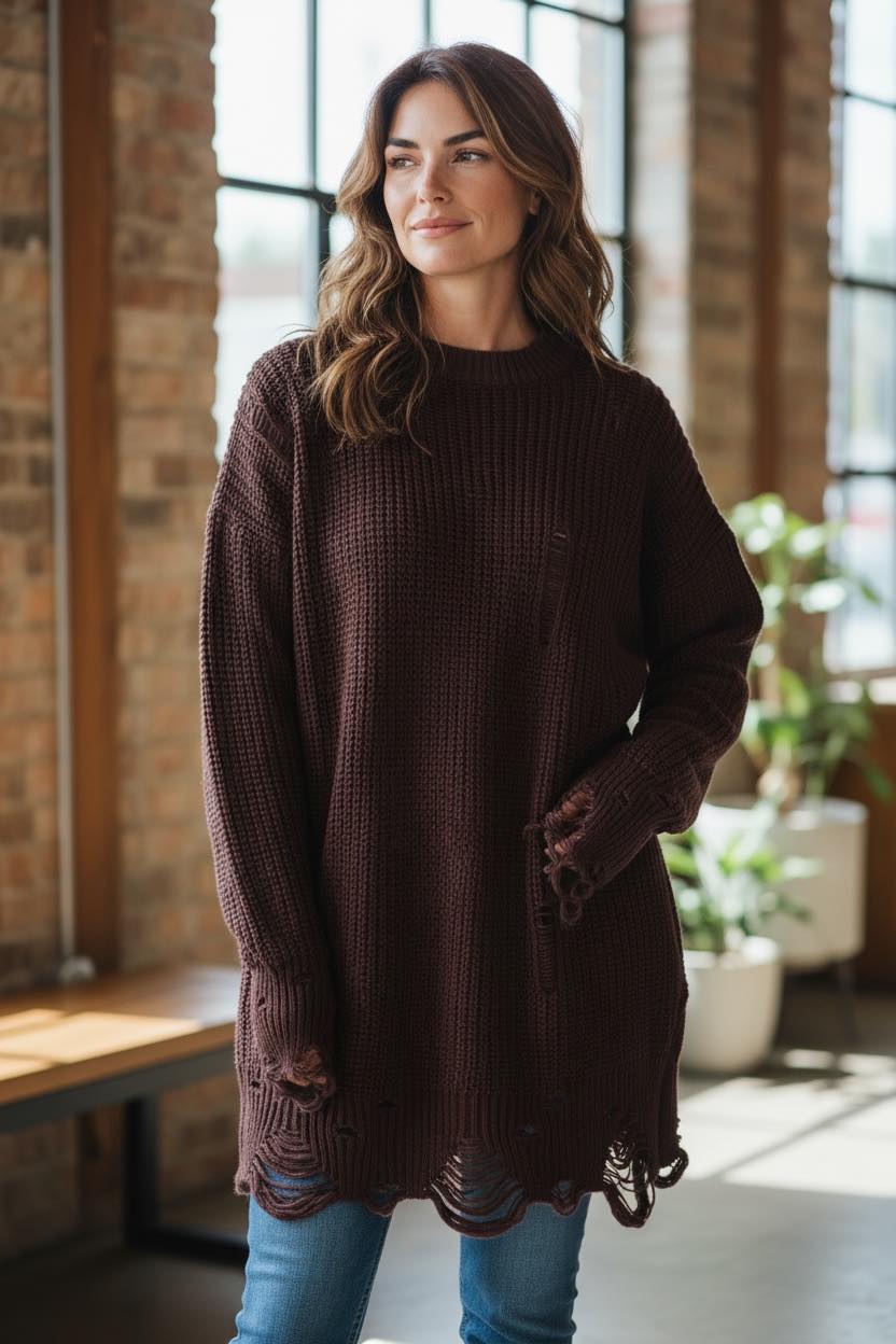Sveter RIPPED CHIC – čokoládový
