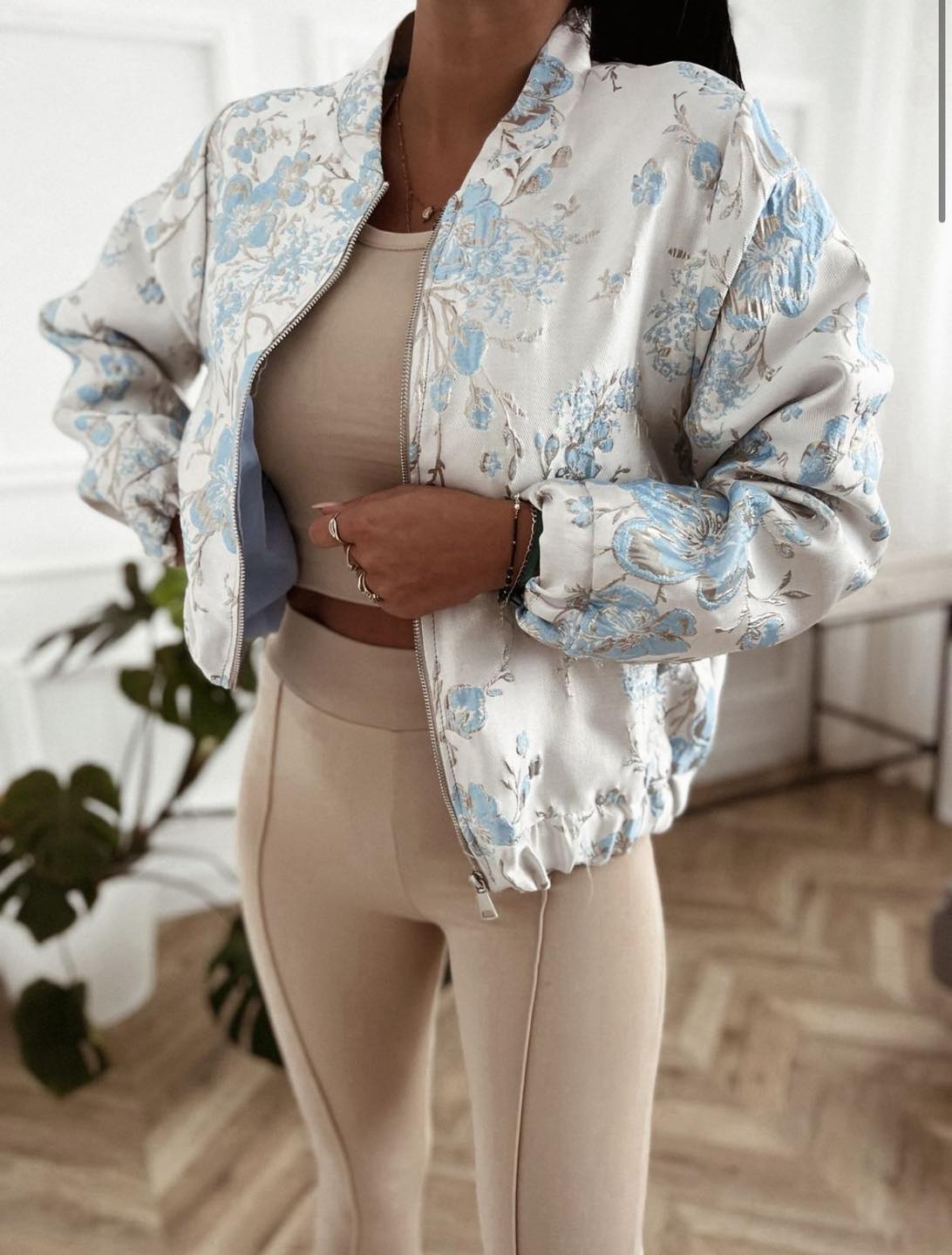 Dodaj svojmu šatníku jemnú eleganciu s touto nádhernou prechodnou bundičkou Flora Blue 🌸💙.